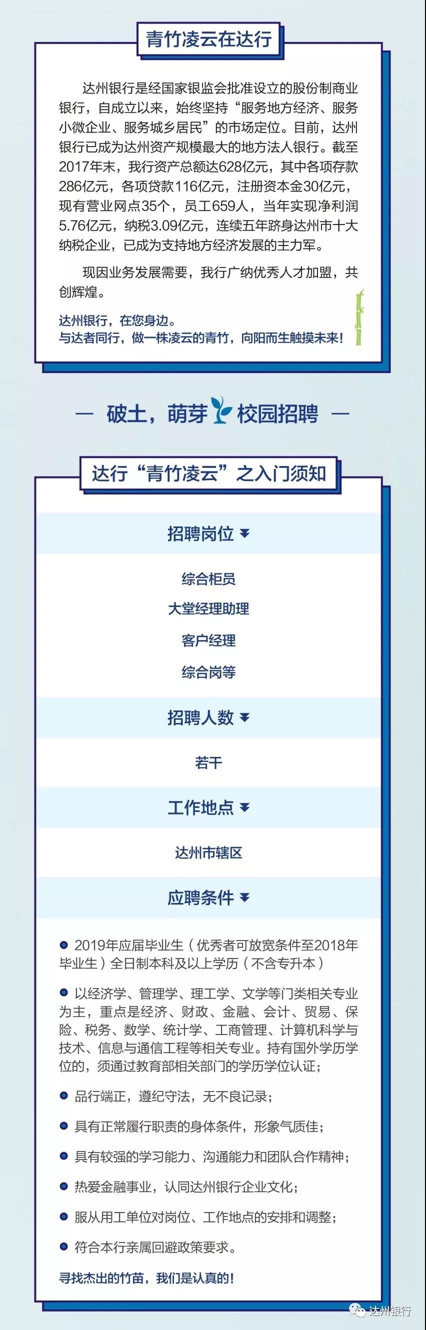 2018達州銀行招聘人才
